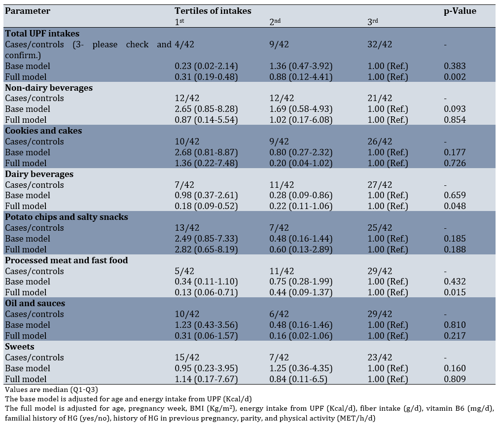 24. Haghshenosabet F, Eslamian G, Kazemi S, Rashidkhani B. Association between pre-pregnancy food group intakes and hyperemesis gravidarum: A case-control study. Iran J Obstet Gynecol Infertil. 2022;24(12):77-87. [Persian] [
