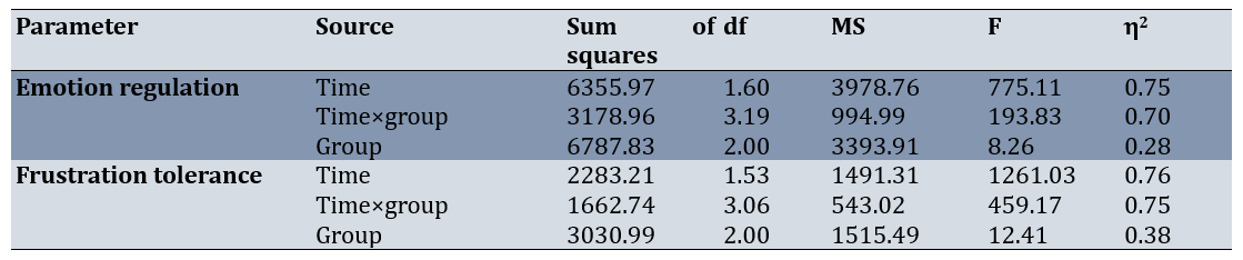 Table 4. Repeated measures ANOVA results for emotion regulation and frustration tolerance (p-Value=0.001)