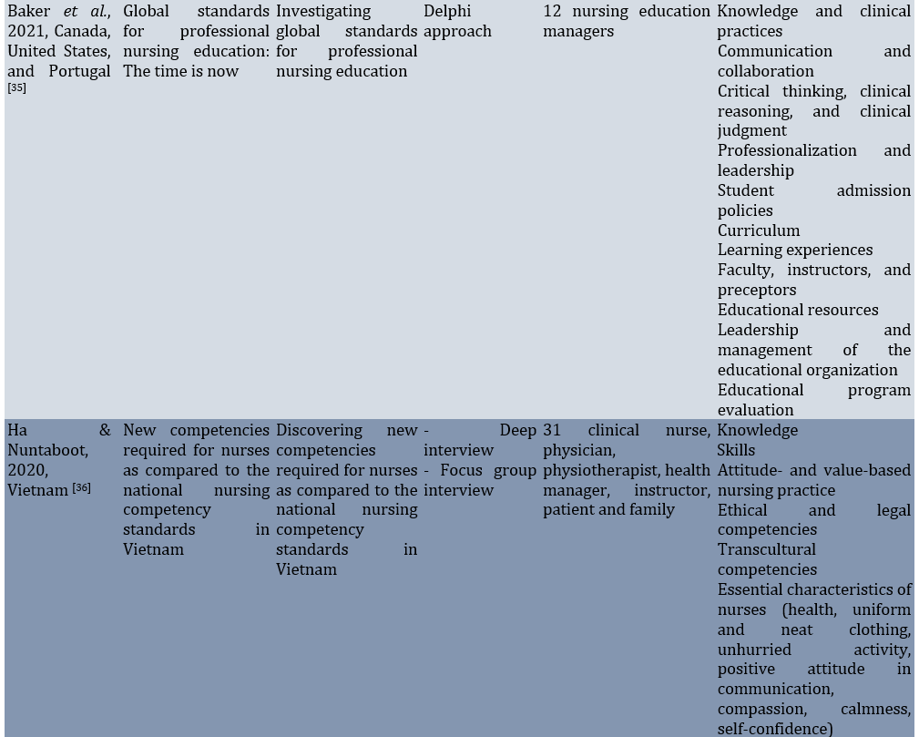 36. Ha DT, Nuntaboot K. New competencies required for nurses as compared to the national nursing competency standards in Vietnam. KONTAKT. 2020;22(2):92-5. [