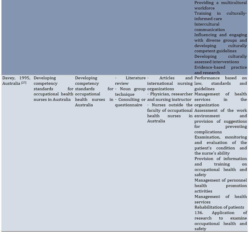 27. Davey GD. Developing competency standards for occupational health nurses in Australia. AAOHN J. 1995;43(3):138-43. [