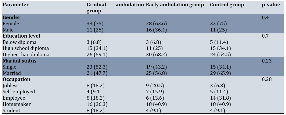 Table 1. Frequency of demographic data of the participants (n=44 per group)
